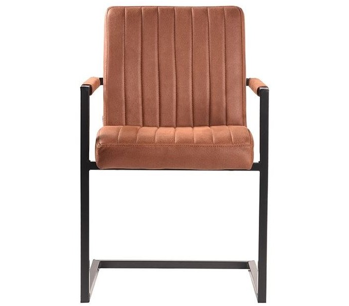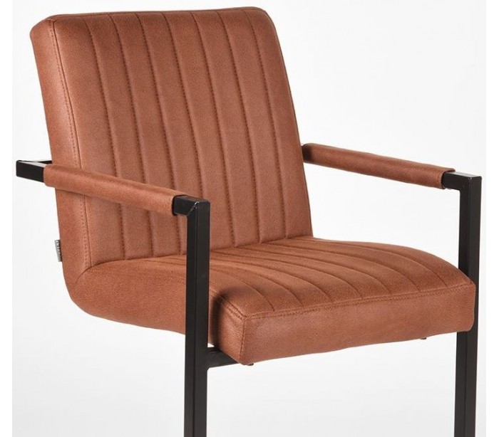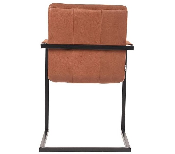 Spisebordsstol udført i et design af vintage cognac microfiber og stel i sortlakeret metal. Stolen måler 55 cm i bredden og 85 cm i højden over ryggen og er polstret med højkvalitets skum.