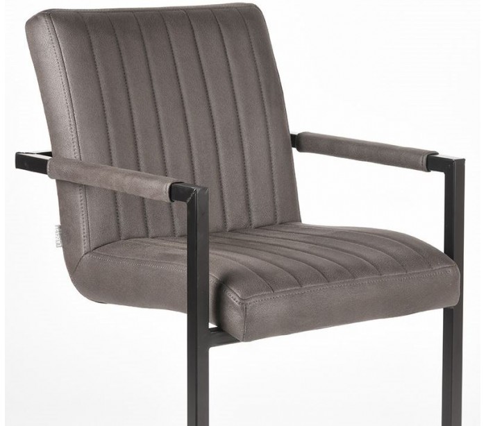 Spisebordsstol udført i et design af vintage antracit microfiber og stel i sortlakeret metal. Stolen måler 55 cm i bredden og 85 cm i højden over ryggen og er polstret med højkvalitets skum.