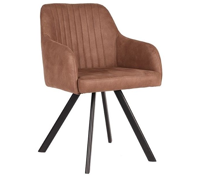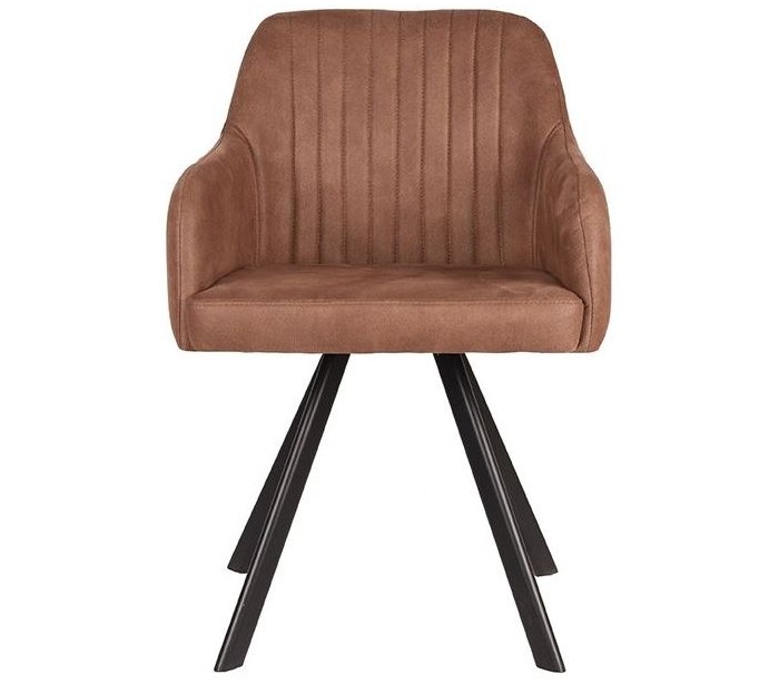 Spisebordsstol udført i et design af vintage brun microfiber og stel i sortlakeret metal. Stolen måler 56 cm i bredden og 84 cm i højden over ryggen og er polstret med højkvalitets skum.