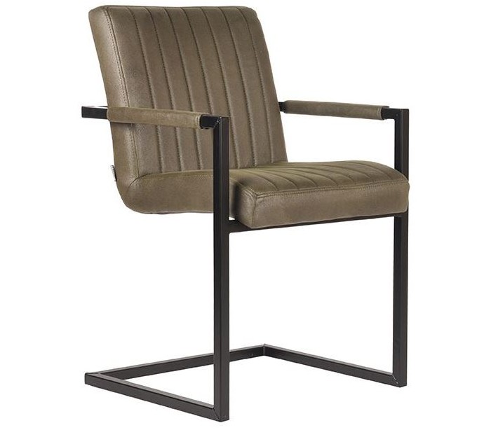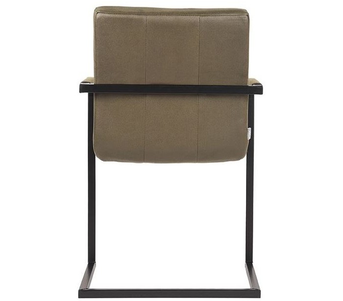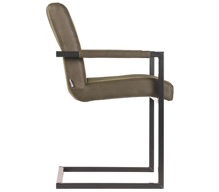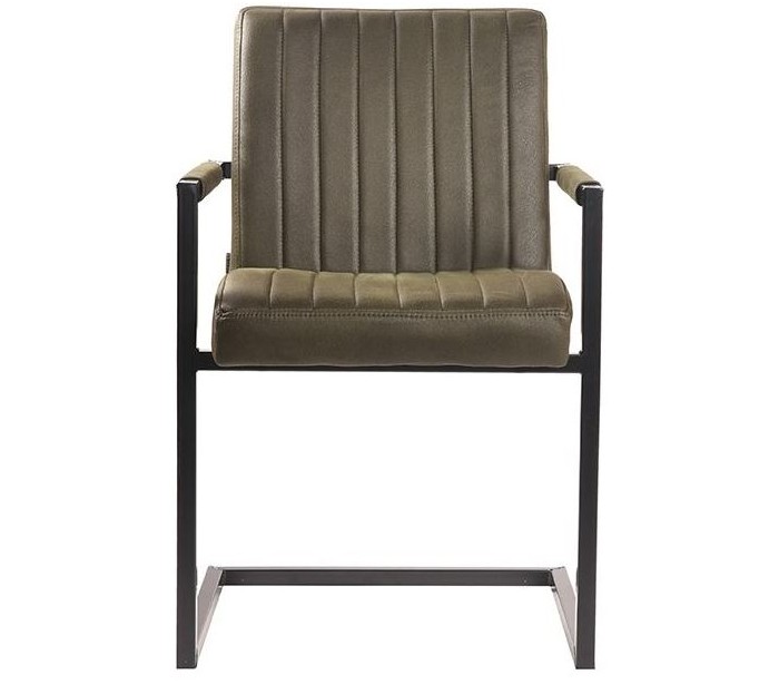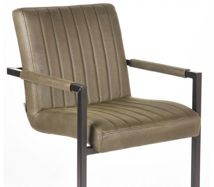 Spisebordsstol udført i et design af vintage armygrøn microfiber og stel i sortlakeret metal. Stolen måler 55 cm i bredden og 85 cm i højden over ryggen og er polstret med højkvalitets skum.