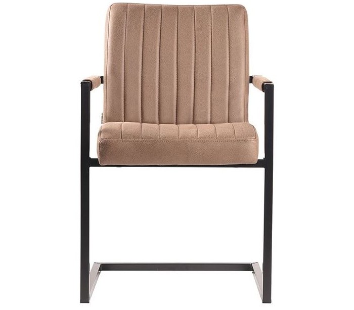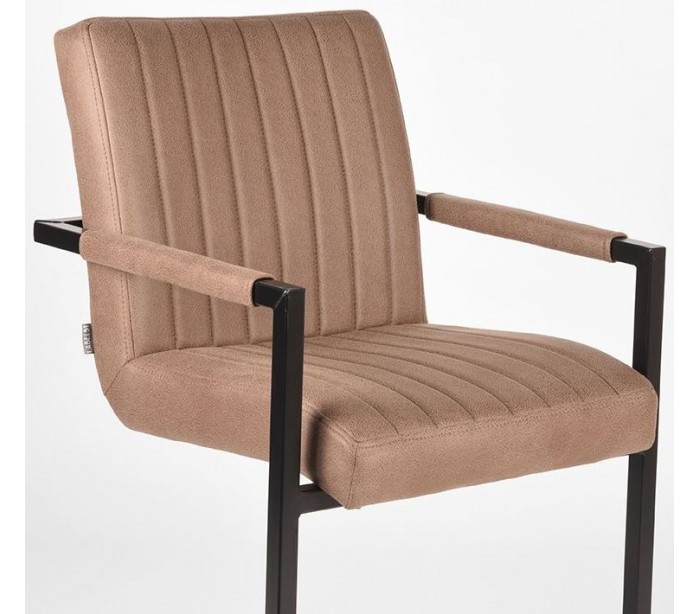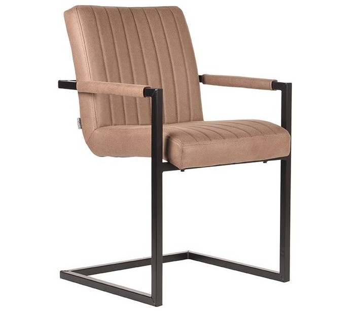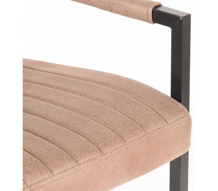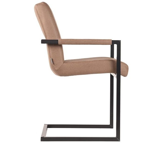 Spisebordsstol udført i et design af vintage stenbrun microfiber og stel i sortlakeret metal. Stolen måler 55 cm i bredden og 85 cm i højden over ryggen og er polstret med højkvalitets skum.