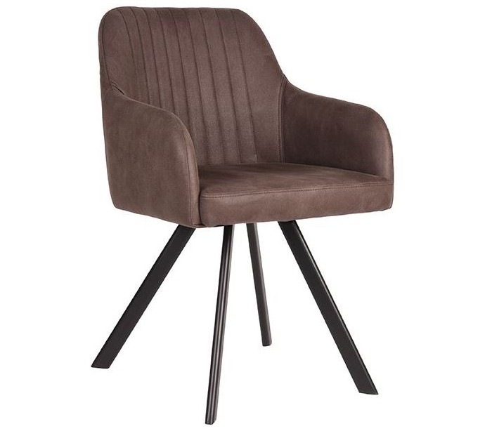 Spisebordsstol udført i et design af vintage trøffelgrå microfiber og stel i sortlakeret metal. Stolen måler 56 cm i bredden og 84 cm i højden over ryggen og er polstret med højkvalitets skum.