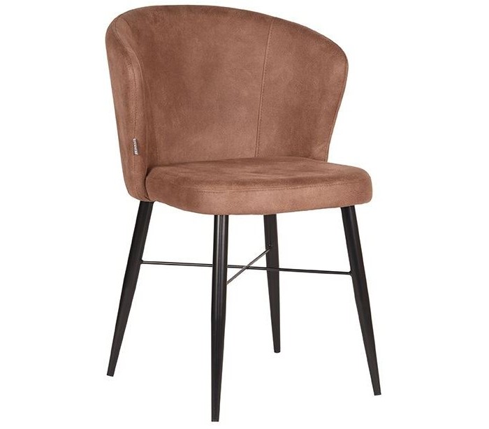 Spisebordsstol udført i et design af vintage brun microfiber og stel i sortlakeret metal. Stolen måler 58 cm i bredden og 85 cm i højden over ryggen og er polstret med højkvalitets skum.