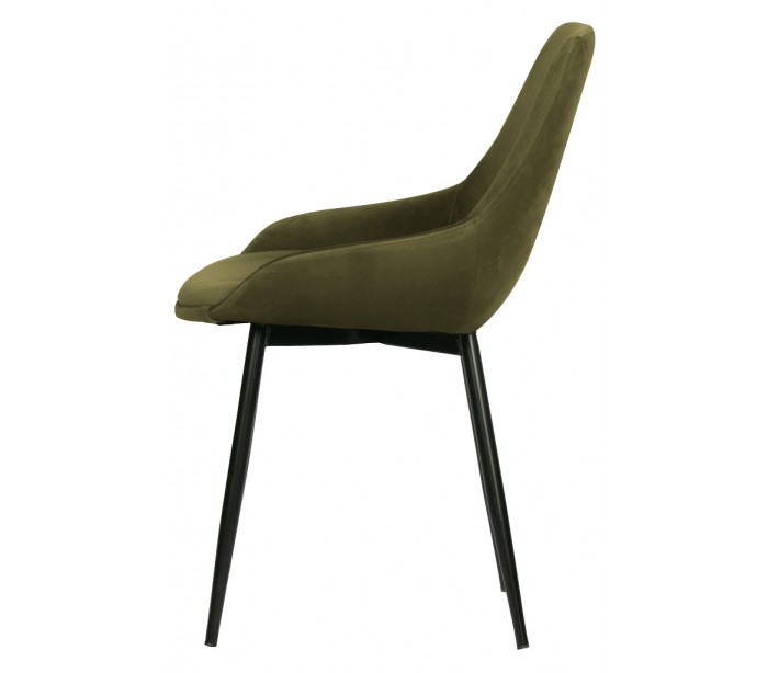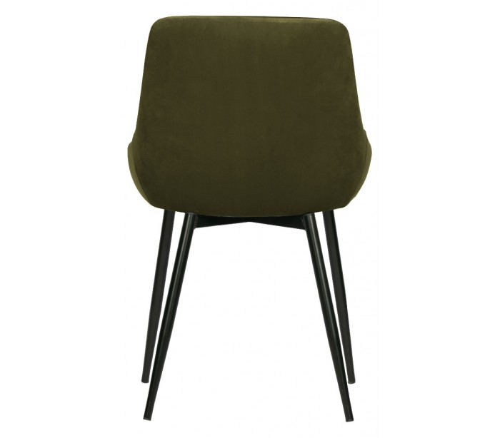 Sæt med 2 spisebordsstole i et moderne design, fremstillet i græsgrøn velour og med ben i sortlakeret metal. Stolen måler 83 cm i højden og 51 x 55 cm i bredde og dybde. Siddehøjden er 47 cm.