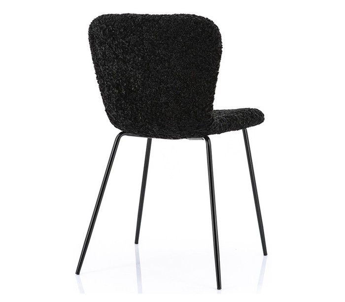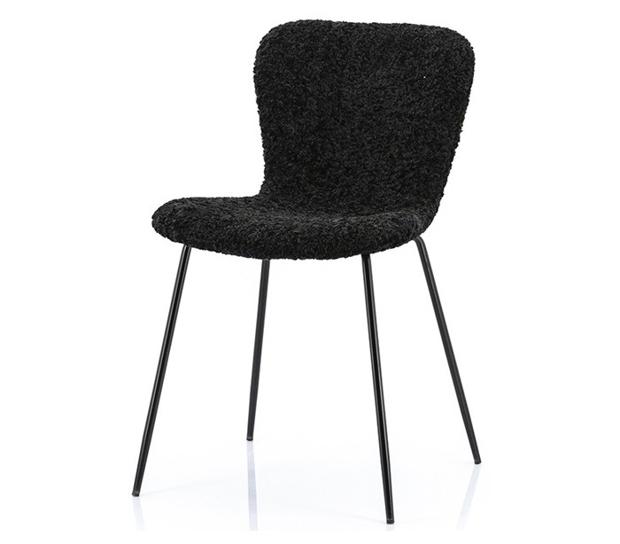 Spisebordsstol i et moderne design, fremstillet i sort polyester og med ben i sortlakeret jern. Stolen måler 80 cm i højden og med siddehøjde på 45 cm.