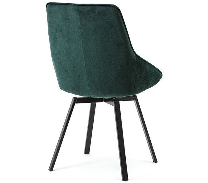 Spisebordsstol i et moderne design, fremstillet i grøn velour og med stel i sortlakeret metal. Stolen måler 87 cm i højden og med siddehøjde på 48 cm.