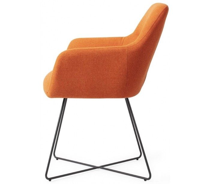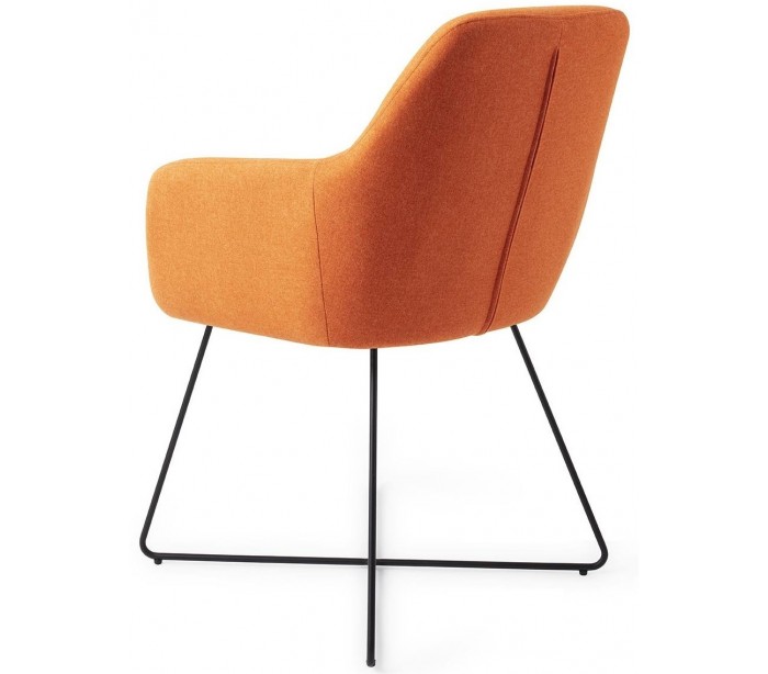 Sæt med 2 Kinko spisebordsstole i et moderne design, fremstillet med sæde i mandarin farvet polyester og stel i sortlakeret metal. Stolen måler 84 cm i højden over ryggen og med siddehøjde på 48 cm.