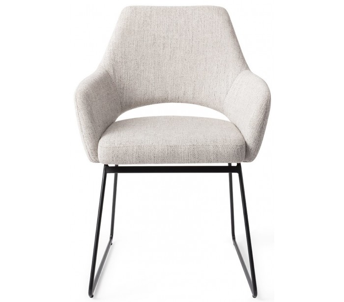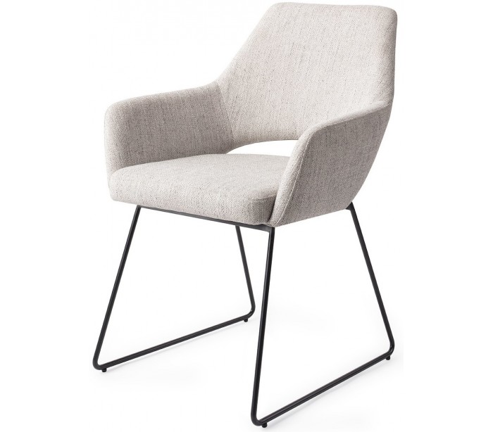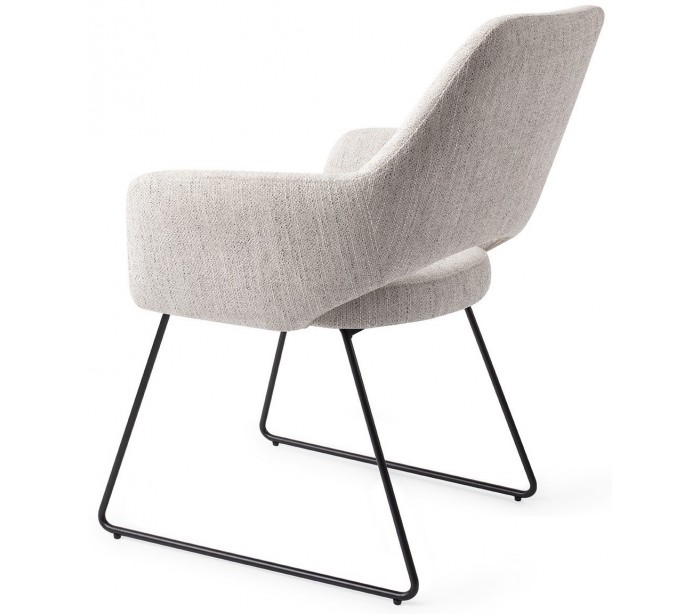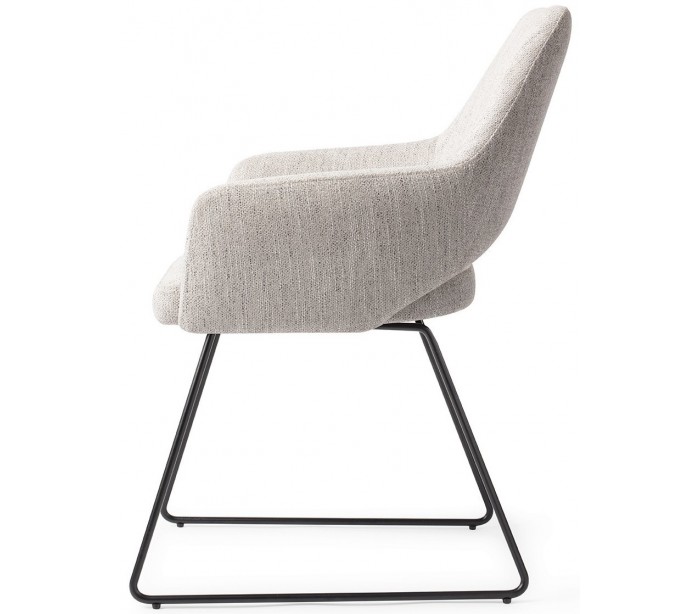 Sæt med 2 Yanai spisebordsstole i et moderne design, fremstillet med sæde i duegrå polyester og stel i sortlakeret metal. Stolen måler 83,5 cm i højden over ryggen og med siddehøjde på 48 cm.