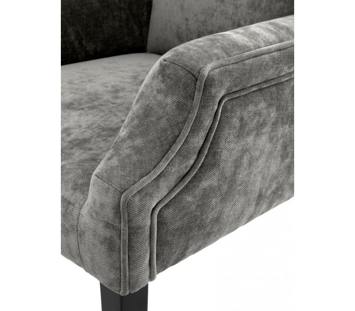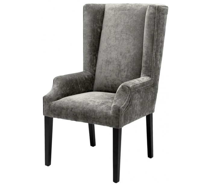 Eichholtz Tempio spisebordsstol i et lækkert polstret design i grå polyester og med ben i sortlakeret bøgetræ. Spisebordsstolen måler 115 cm i højden over ryggen og med en siddehøjde på 50 cm.