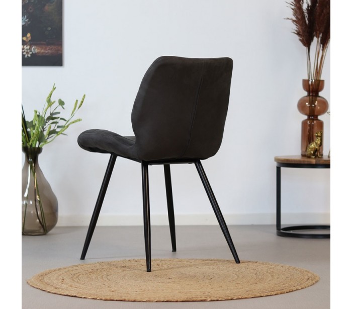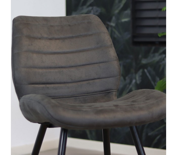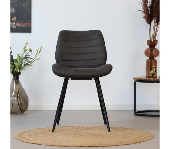 Morris spisebordsstol i et moderne design, fremstillet med sæde i antracitfarvet mikrofiber og ben i sortlakeret metal. Stolen måler 77 cm i højden over ryggen og med siddehøjde på 48 cm. Betrækket er med martindale 45.000, som gør stolen særligt anvendelig til restaurationer/spisesteder.