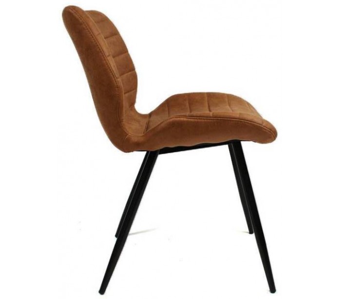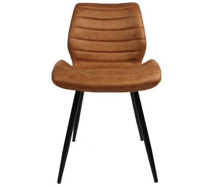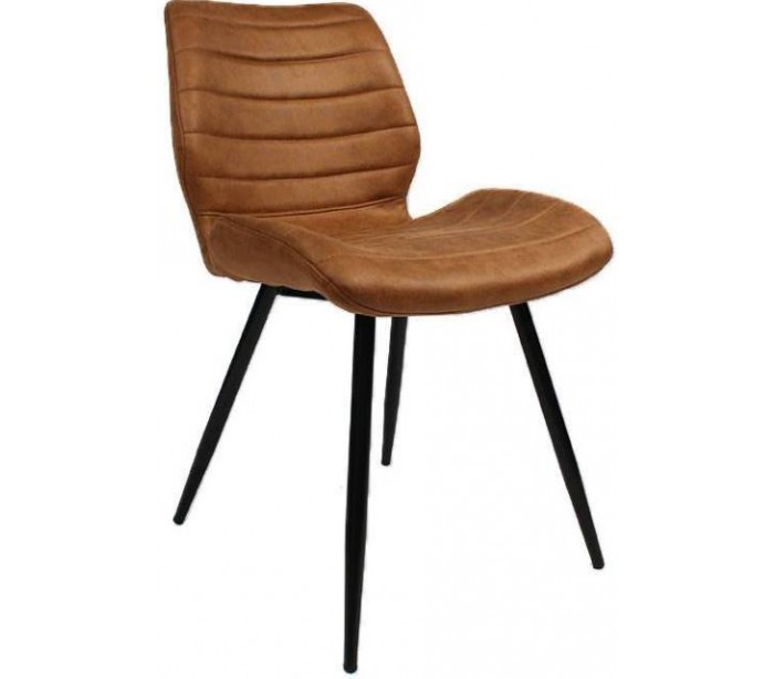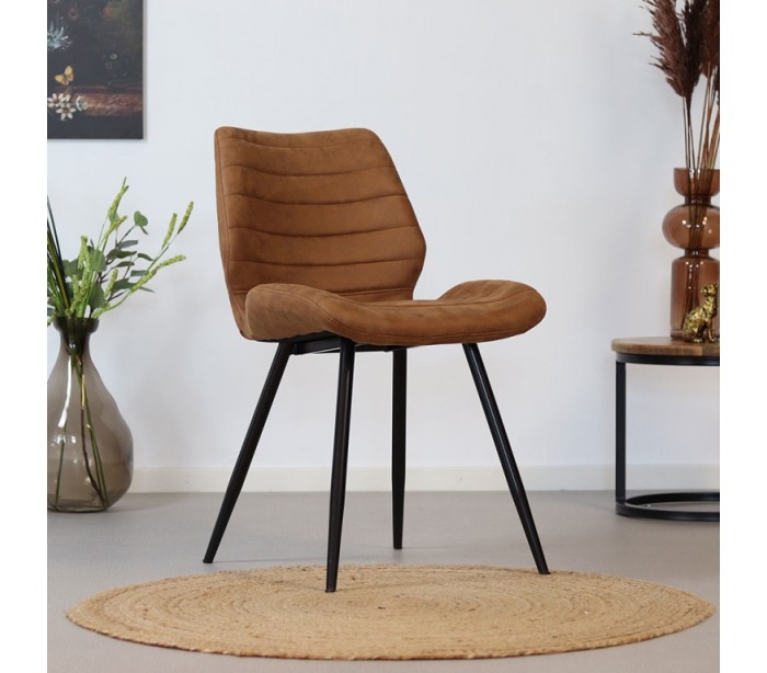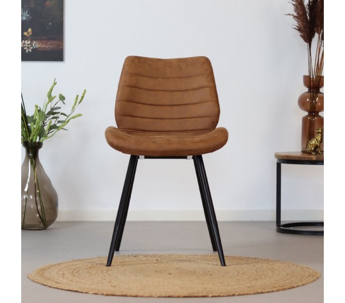Morris spisebordsstol i et moderne design, fremstillet med sæde i cognacfarvet mikrofiber og ben i sortlakeret metal. Stolen måler 77 cm i højden over ryggen og med siddehøjde på 48 cm. Betrækket er med martindale 45.000, som gør stolen særligt anvendelig til restaurationer/spisesteder.
