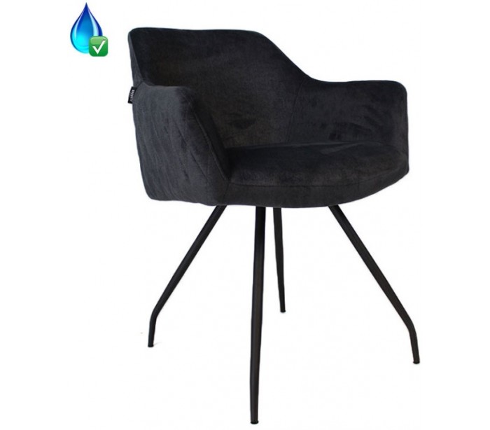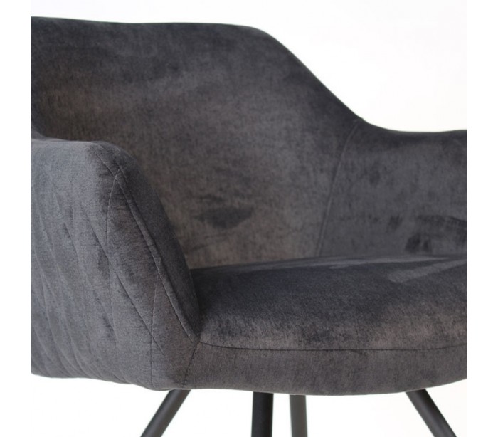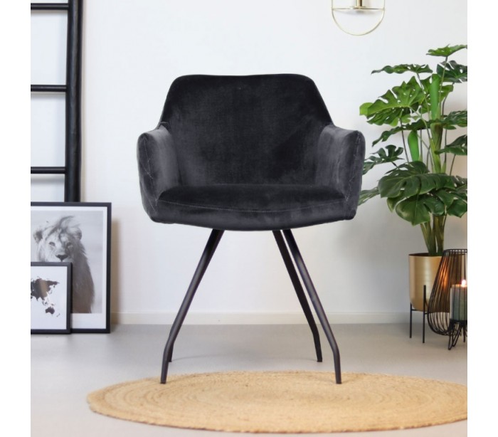 Nelly spisebordsstol i et moderne design, fremstillet med sæde i antracitfarvet velour og ben i sortlakeret metal. Stolen måler 81,5 cm i højden over ryggen og med siddehøjde på 50 cm. Velouren er vandafvisende og med martindale 70.000, som gør stolen særligt anvendelig til restaurationer/spisesteder.