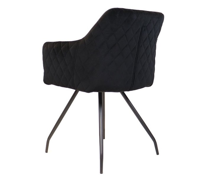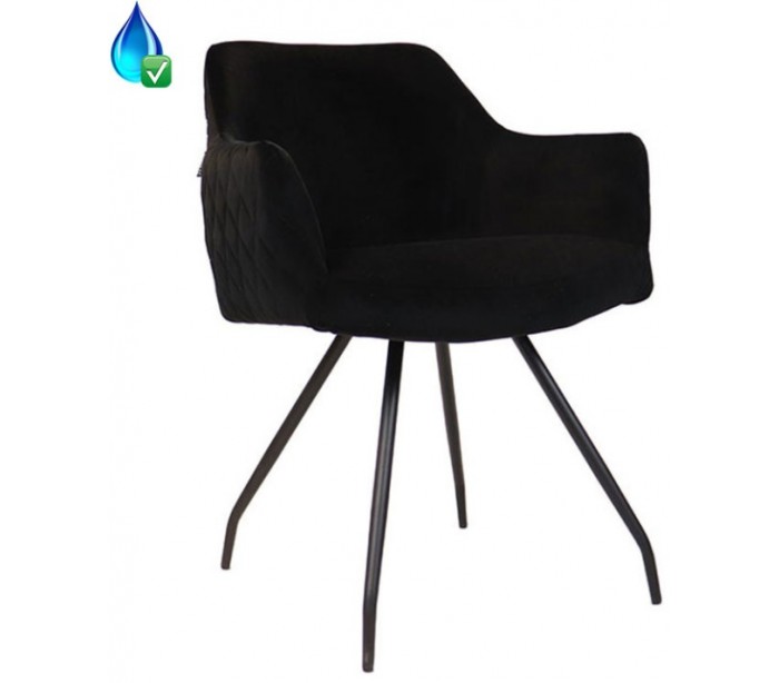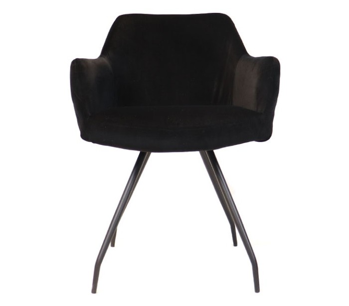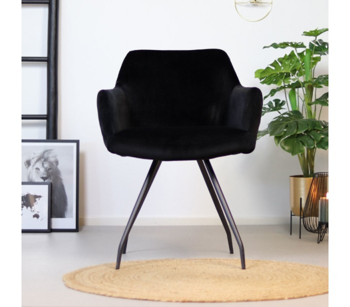 Nelly spisebordsstol i et moderne design, fremstillet med sæde i sort velour og ben i sortlakeret metal. Stolen måler 81,5 cm i højden over ryggen og med siddehøjde på 50 cm. Velouren er vandafvisende og med martindale 70.000, som gør stolen særligt anvendelig til restaurationer/spisesteder.