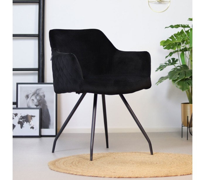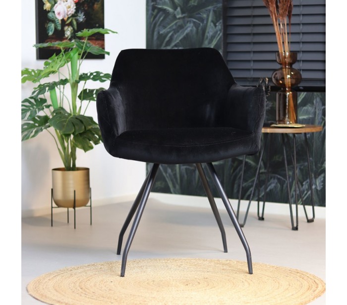 Nelly Spisebordsstol i velour H81,5 cm - Sort/Sort