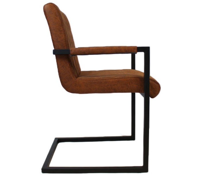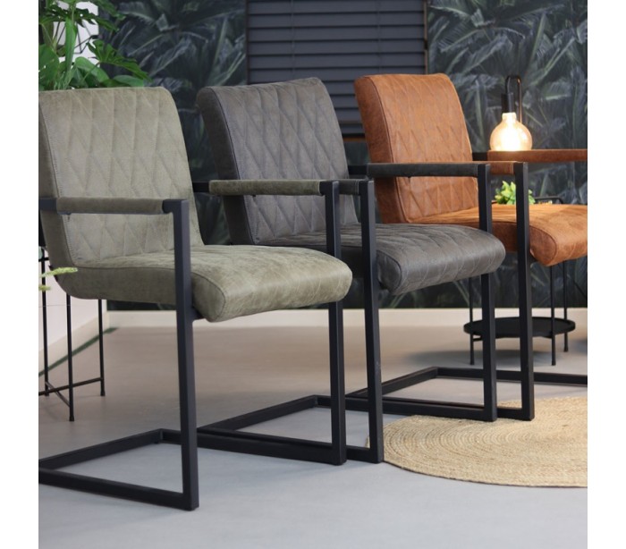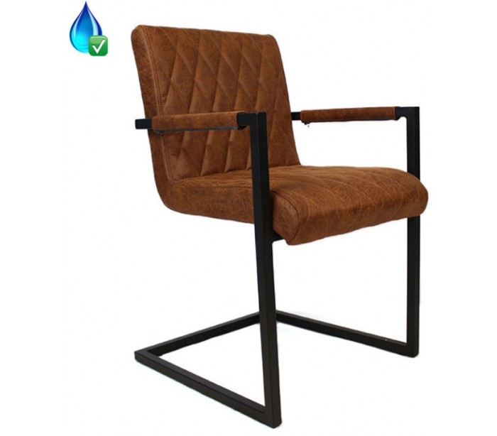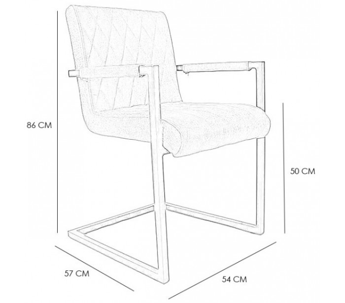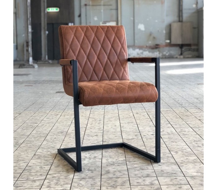 Diamond spisebordsstol i et industrielt design, fremstillet med sæde i øko-læder (30% Polyester/70% Læder) og stel i sortlakeret metal. Stolen måler 86 cm i højden over ryggen og med siddehøjde på 50 cm. Betrækket er vandafvisende.