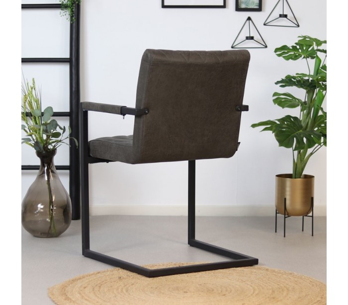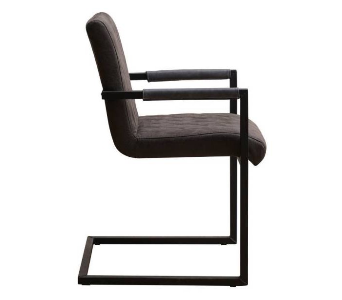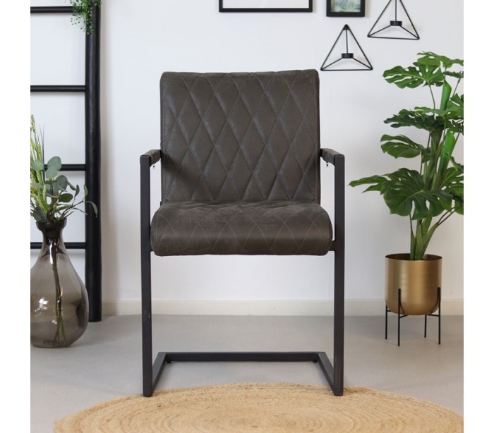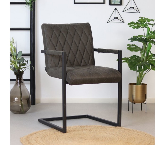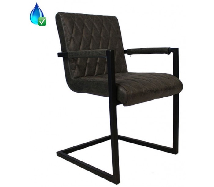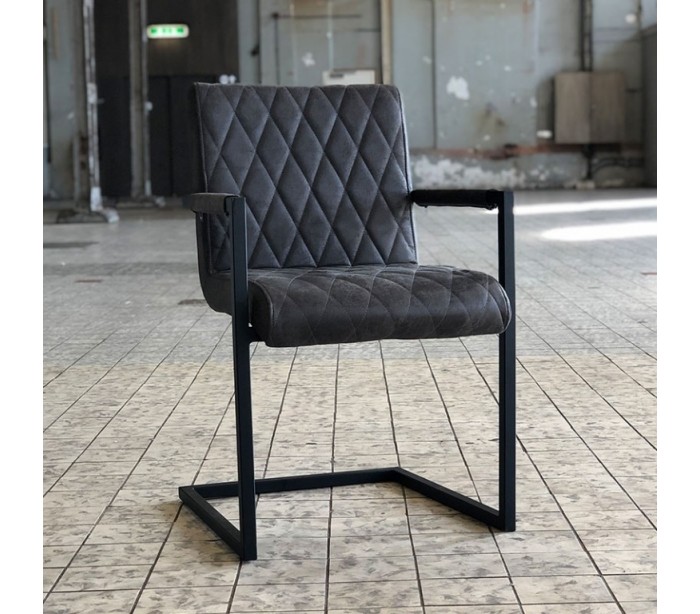 Diamond spisebordsstol i et industrielt design, fremstillet med sæde i øko-læder (30% Polyester/70% Læder) og stel i sortlakeret metal. Stolen måler 86 cm i højden over ryggen og med siddehøjde på 50 cm. Betrækket er vandafvisende.