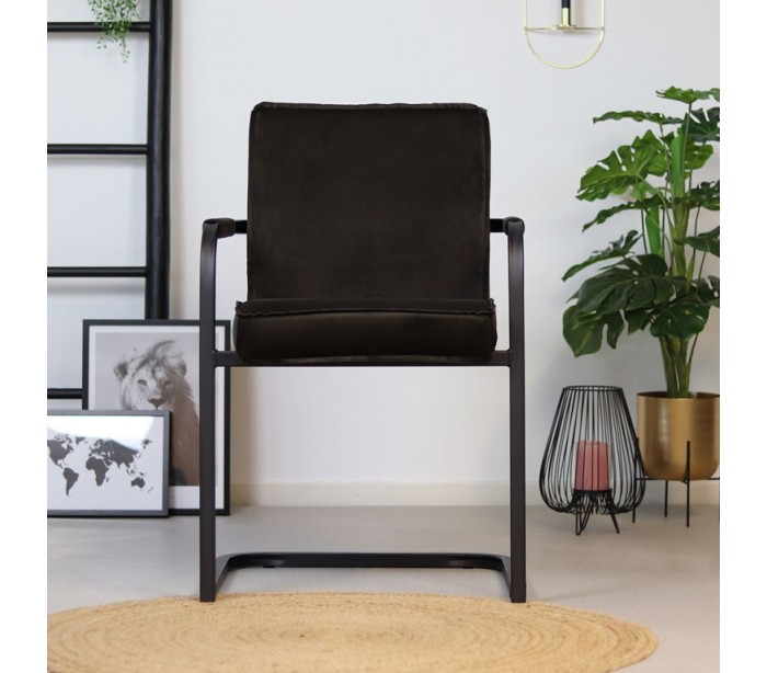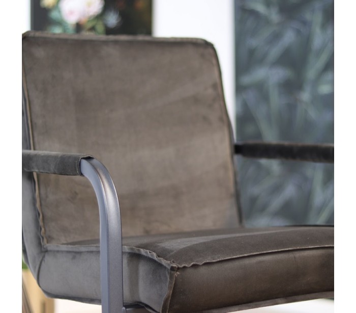 Chloe Spisebordsstol i velour H84 cm - Sort/Antracitbrun