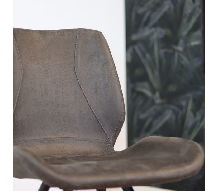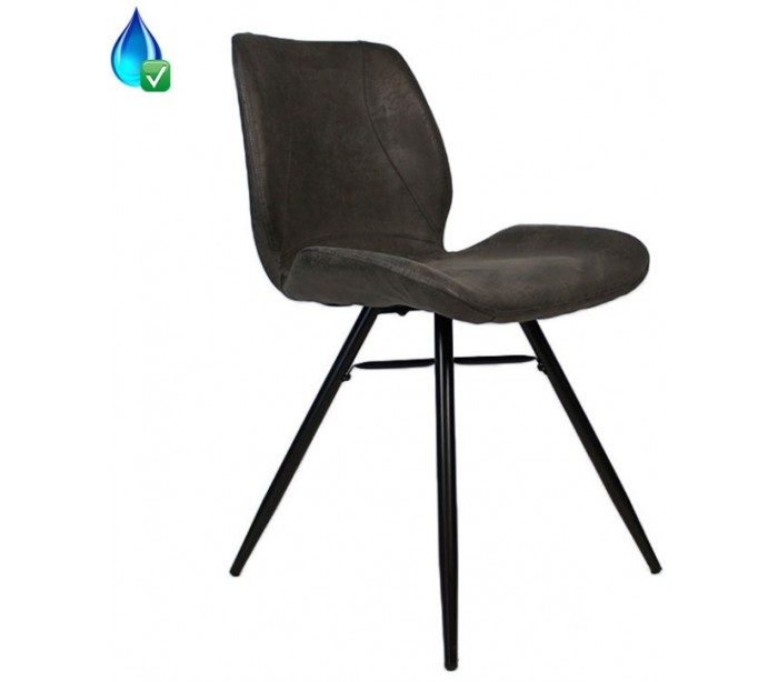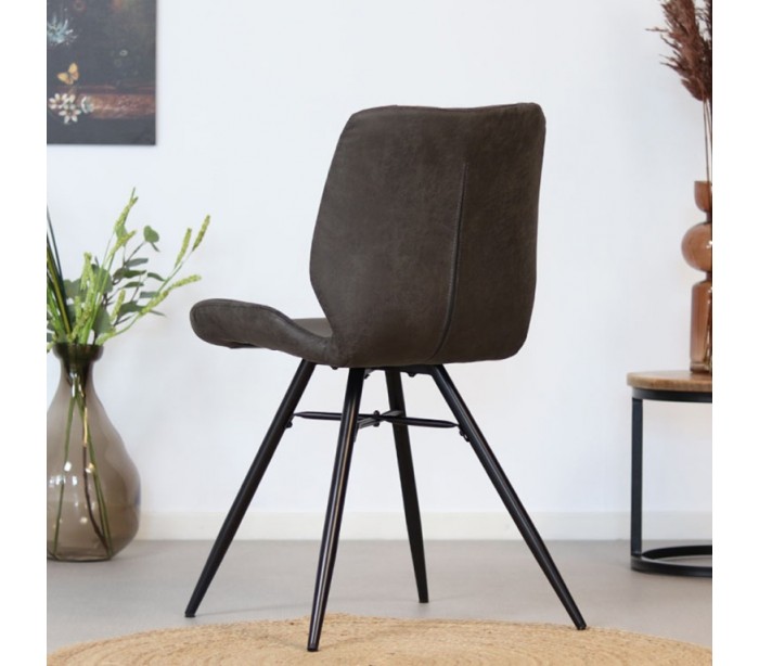 Barrel spisebordsstol i et moderne design, fremstillet med sæde i øko-læder (30% Polyester/70% Læder) og stel i sortlakeret metal. Stolen måler 81,5 cm i højden over ryggen og med siddehøjde på 46 cm. Betrækket er vandafvisende.