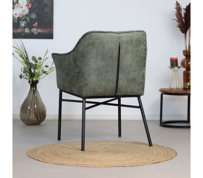 Aaron Spisebordsstol i læderlook H81 cm - Sort/Olivengrøn