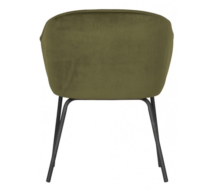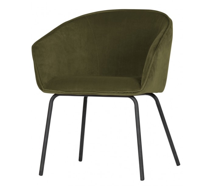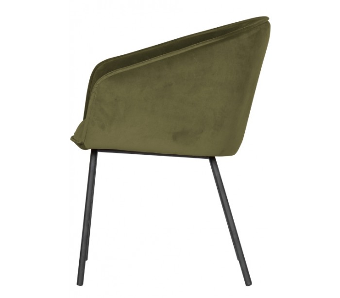 Sæt med 2 spisebordsstole udført i et flot design af armygrøn velour og med ben i mat sortlakeret metal. Stolene måler 75 cm i højden og er polstret med højkvalitets skum.