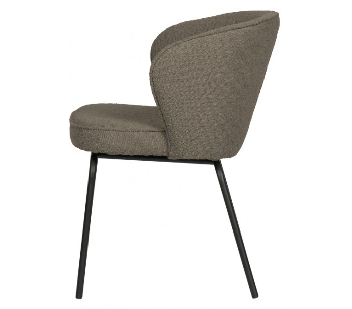 Sæt med 2 spisebordsstole udført i et flot design af nougatfarvet polyester og med ben i sortlakeret metal. Stolene måler 77 cm i højden og er polstret med højkvalitets skum.