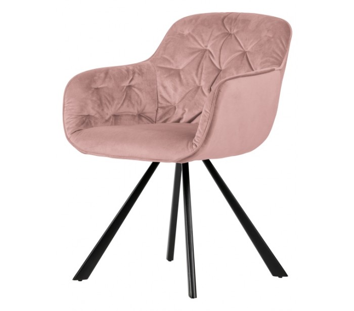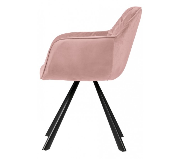 Spisebordsstol i et moderne design, fremstillet i pink velour, og med ben i sortlakeret metal. Stolen måler 80,5 cm i højden og 59,5 x 59 cm i bredde og dybde. Siddehøjden er 49 cm.
