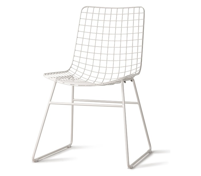 2 x Spisebordsstole i et design fremstillet i hvidlakeret metal. Stolene måler 86 cm i højden over ryggen og med en siddehøjde på 43,5 cm. Bemærk venligst, at eventuelle siddehynder købes separat (Ekskl.).