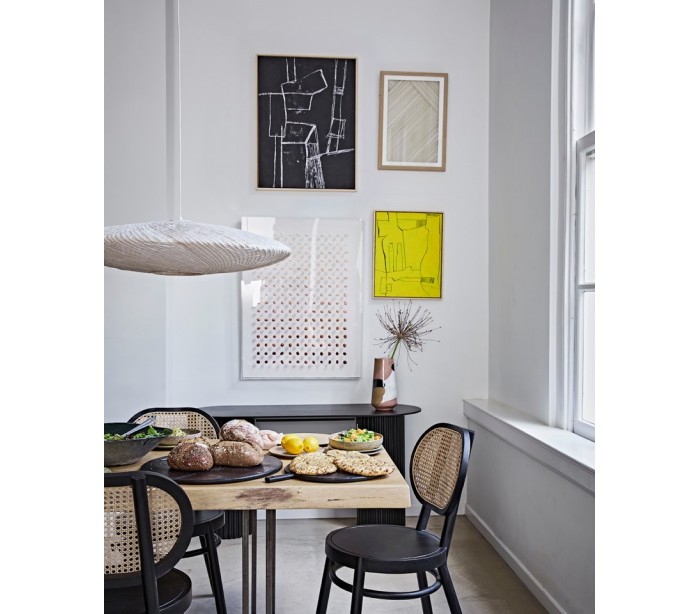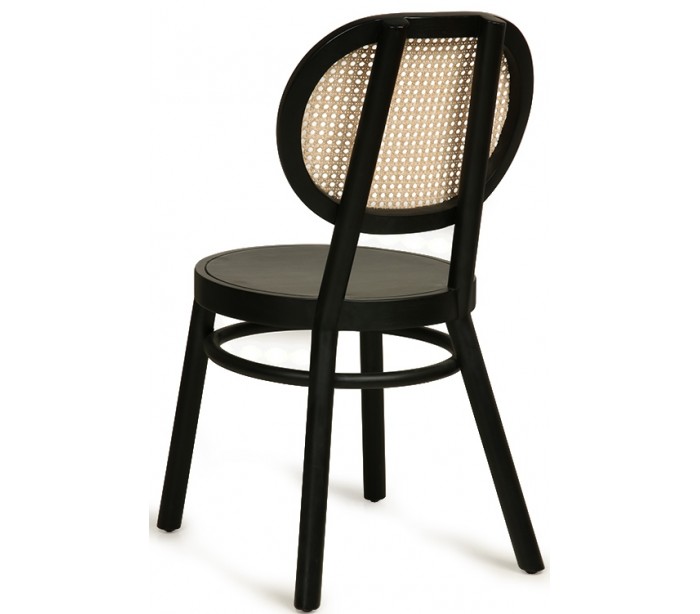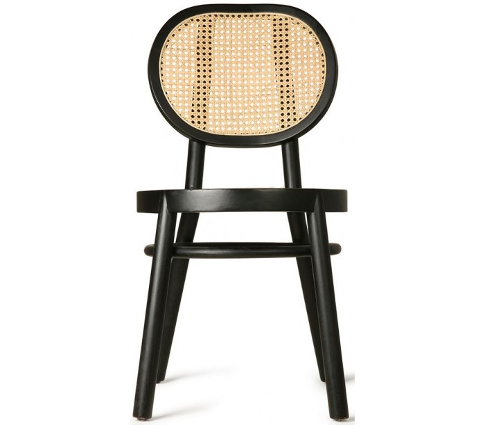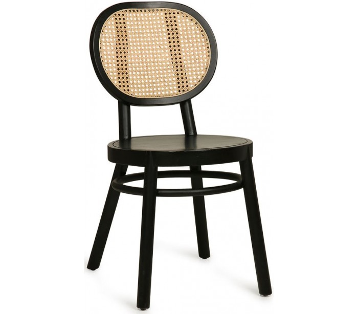 Spisebordsstol i et design fremstillet i sortlakeret sunkaitræ og naturfarvet rattan. Stolen måler 85 cm i højden over ryggen og med en siddehøjde på 46 cm.