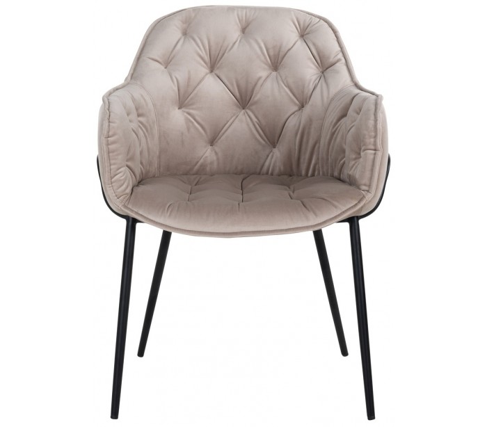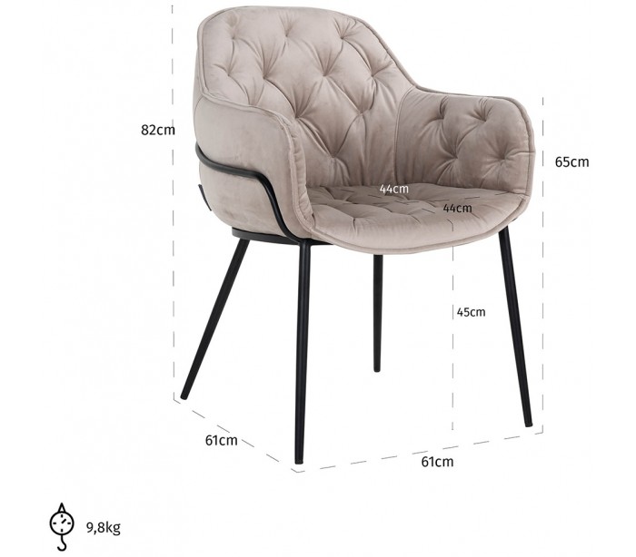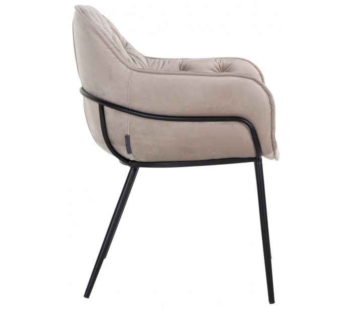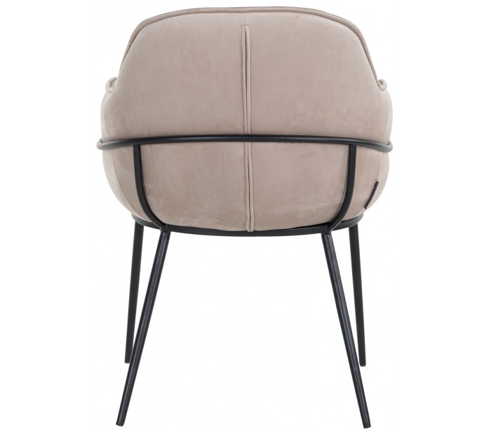 Spisebordsstol i et design fra hollandske Richmond Interiors. Stolen er fremstillet i khakifarvet velour og med stel i sortlakeret metal. Stolen måler 82 cm i højden over ryggen og 61 x 61 cm i bredde og dybde.