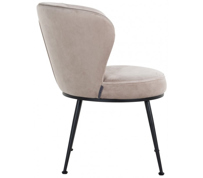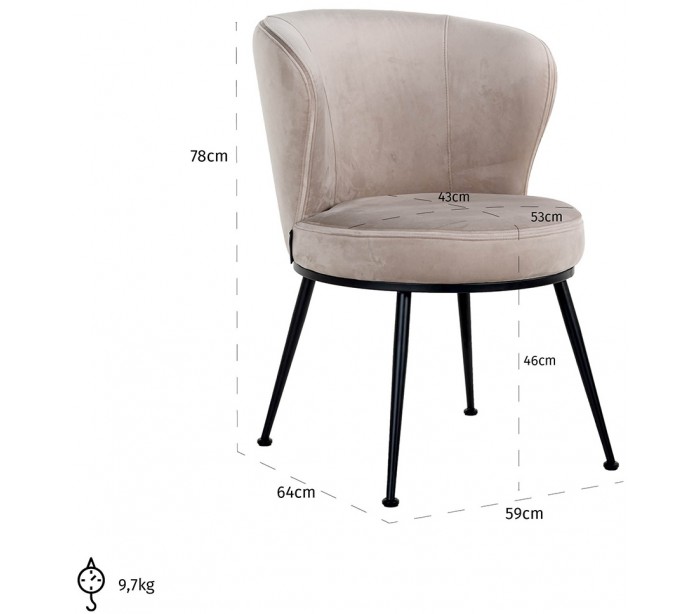 Spisebordsstol i et design fra hollandske Richmond Interiors. Stolen er fremstillet i khakifarvet velour og med stel i sortlakeret metal. Stolen måler 78 cm i højden over ryggen og 59 x 64 cm i bredde og dybde.