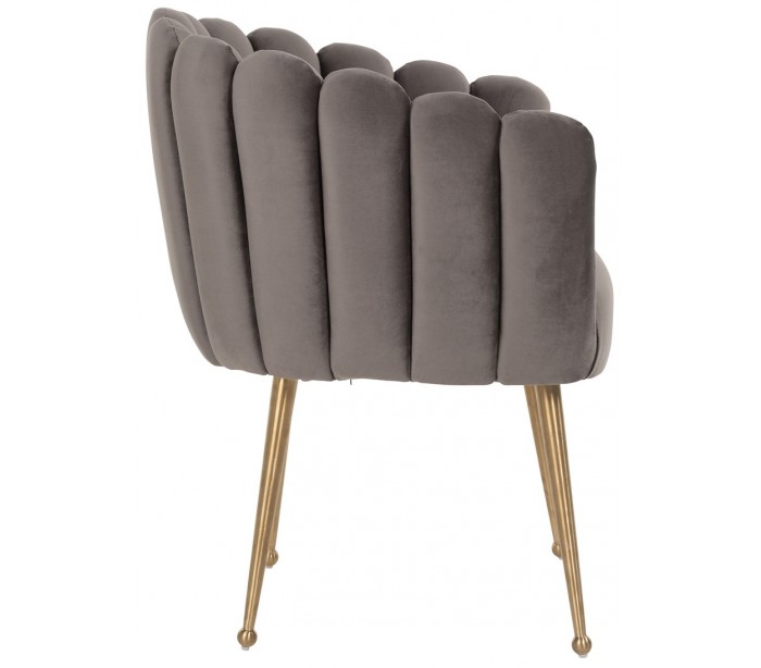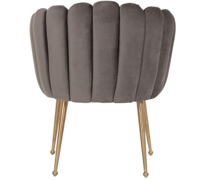 Spisebordsstol i et design fra hollandske Richmond Interiors. Stolen er fremstillet i stengrå velour og med ben i børstet guldfarvet stål. Stolen måler 78 cm i højden over ryggen og 64 x 59 cm i bredde og dybde.