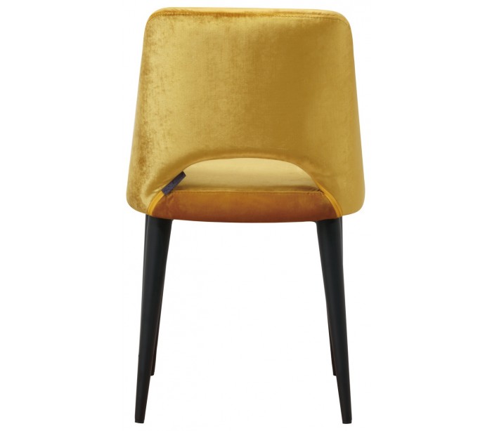 Spisebordsstol i et design fra hollandske Richmond Interiors. Stolen er fremstillet i okkerfarvet velour og med ben i sortlakeret metal. Stolen måler 86 cm i højden over ryggen og 49 x 62 cm i bredde og dybde.