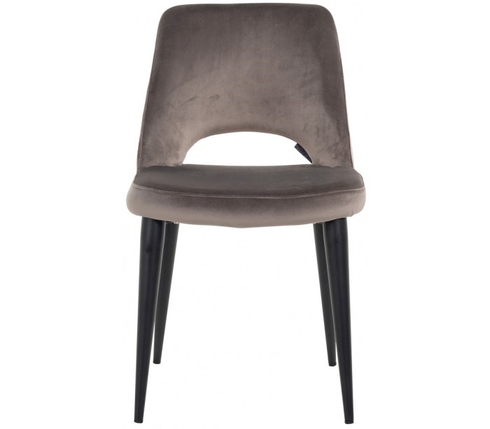 Spisebordsstol i et design fra hollandske Richmond Interiors. Stolen er fremstillet i stengrå velour og med ben i sortlakeret metal. Stolen måler 86 cm i højden over ryggen og 49 x 62 cm i bredde og dybde.