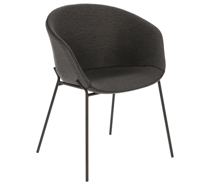 Spisebordsstol i et design fra LaForma. Stolen er fremstillet i mørkegrå tekstil og med stel i sortlakeret stål. Stolen måler 76 cm i højden over ryggen og 60 x 54 cm i bredde og dybde.