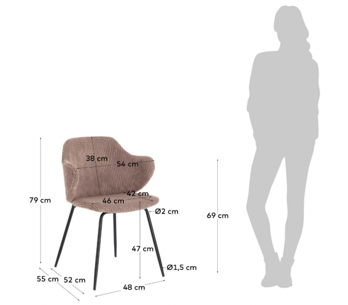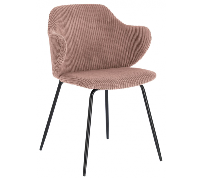 Spisebordsstol i et design fra LaForma. Stolen er fremstillet i pink velour ripcurl og med stel i sortlakeret stål. Stolen måler 79 cm i højden over ryggen og 54 x 55 cm i bredde og dybde.