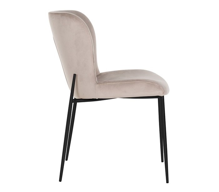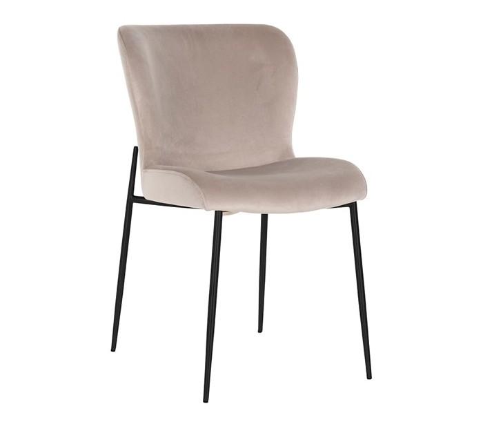 Spisebordsstol i et design fra hollandske Richmond Interiors. Stolen er fremstillet i khakifarvet velour og med ben i sortlakeret stål. Stolen måler 84,5 cm i højden over ryggen og 50 x 63 cm i bredde og dybde.