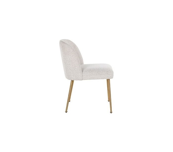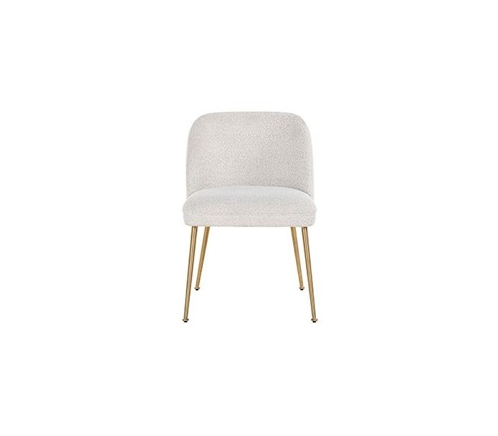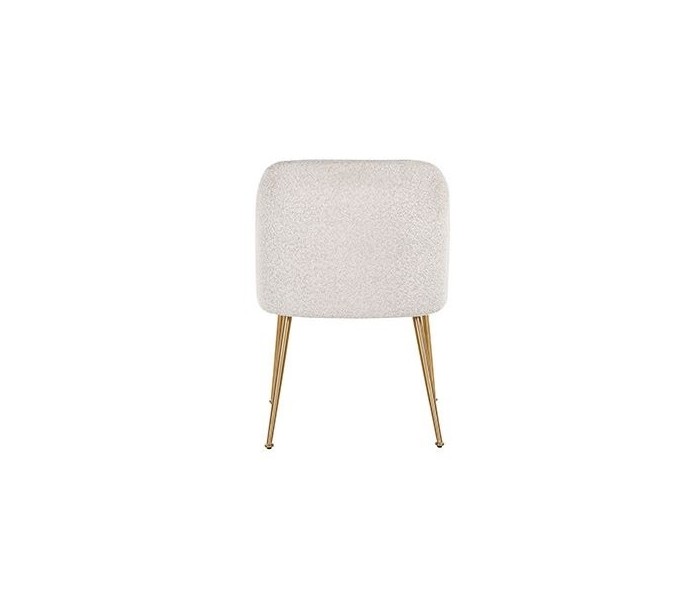 Spisebordsstol i et design fra hollandske Richmond Interiors. Stolen er fremstillet i hvid 100% polyester og med ben i børstet guldfarvet stål. Stolen måler 84 cm i højden over ryggen og 57 x 62 cm i bredde og dybde.