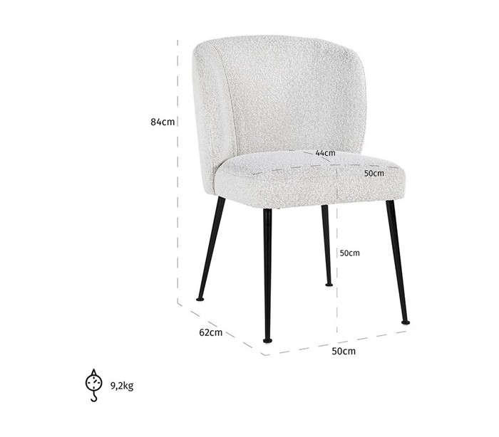 Fallon spisebordsstol i bouclé H84 cm - Hvid/Sort