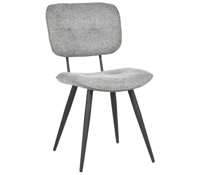 Spisebordsstol i et moderne design, fremstillet i grå polyester og med stel i sortlakeret metal. Stolen måler 87 cm i højden og 49 cm i bredden.