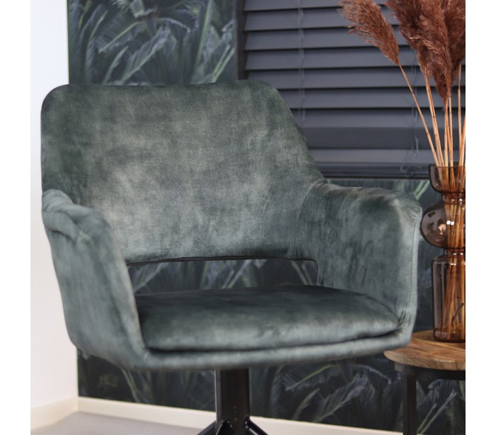 Nina rotérbar spisebordsstol i velour H84 cm - Sort/Mørkegrøn