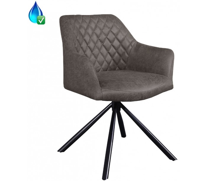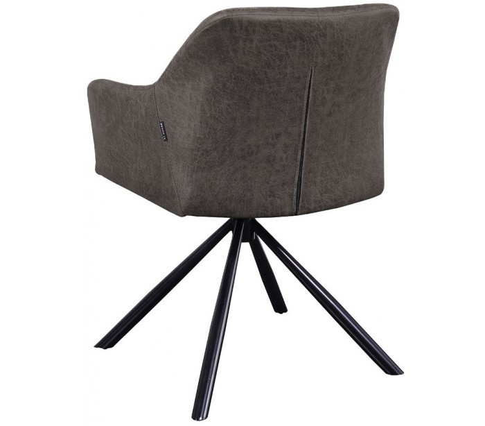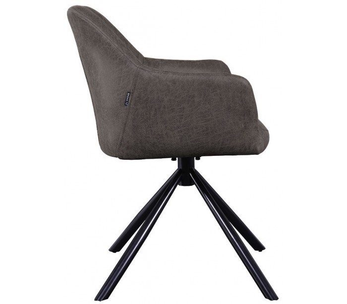 Dex spisebordsstol i et industrielt design, fremstillet med sæde i øko-læder (30% Polyester/70% Læder) og stel i sortlakeret metal. Stolen måler 80 cm i højden over ryggen og med siddehøjde på 49 cm. Betrækket er vandafvisende og stellet rotérbart 180 grader.