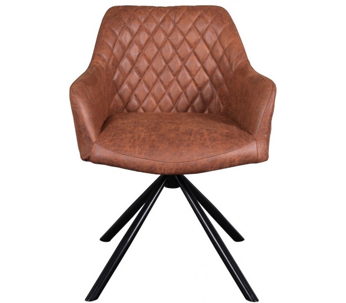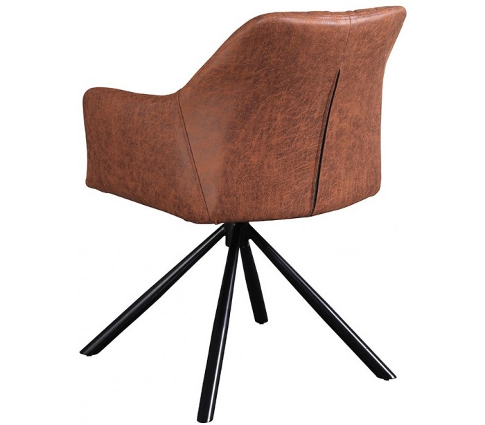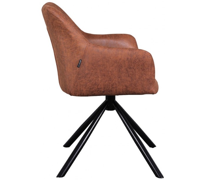 Dex spisebordsstol i et industrielt design, fremstillet med sæde i øko-læder (30% Polyester/70% Læder) og stel i sortlakeret metal. Stolen måler 80 cm i højden over ryggen og med siddehøjde på 49 cm. Betrækket er vandafvisende og stellet rotérbart 180 grader.