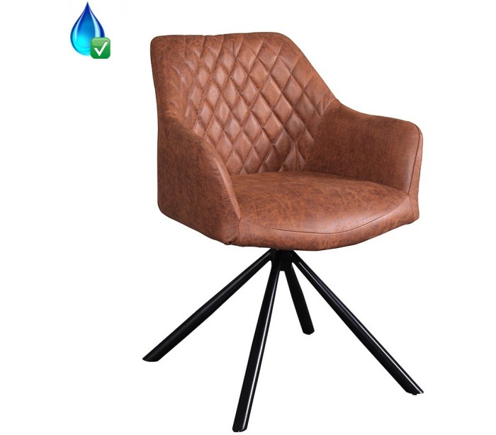 Dex rotérbar spisebordsstol i øko-læder H80 cm - Sort/Vintage cognac