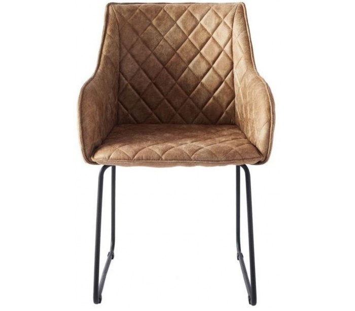 Riviera Maison spisebordsstol i et design af camel farvet pellini læder og sortlakeret metal. Stolen måler 83 cm i højden over ryggen og 54 cm i bredden.