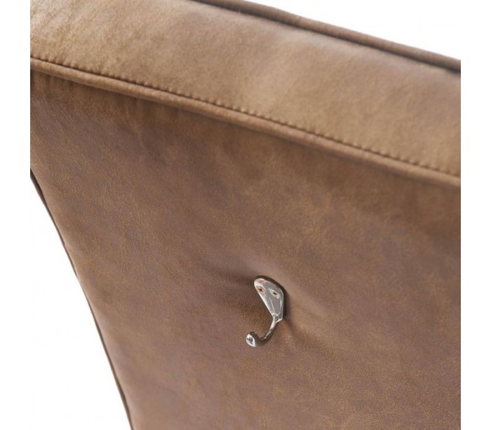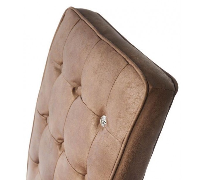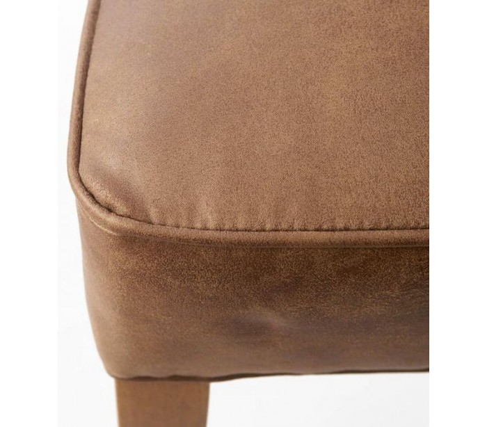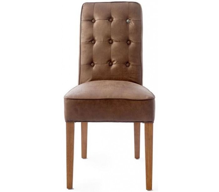 Riviera Maison spisebordsstol i et design af kaffefarvet pellini læder og brunlakeret træ. Stolen måler 96 cm i højden over ryggen og 47 cm i bredden. Detalje med knap med logo på front og krog på bagside.