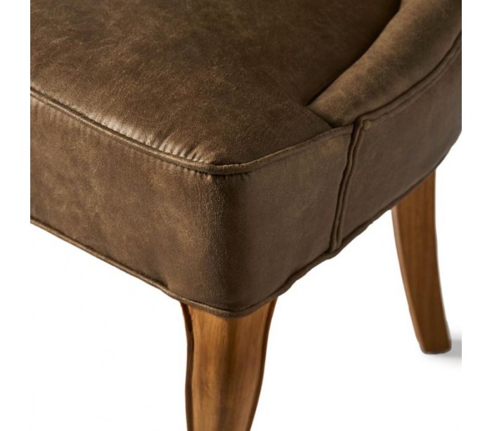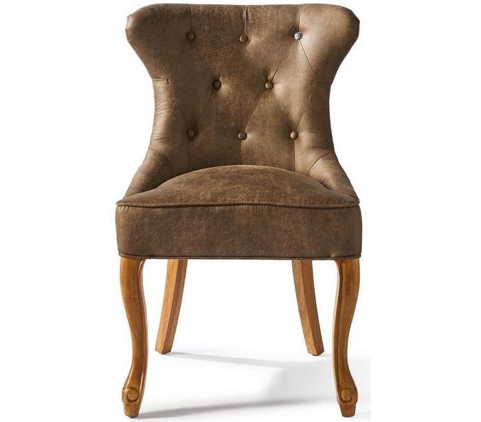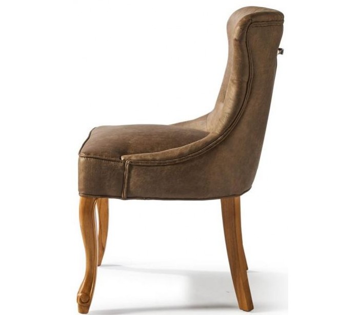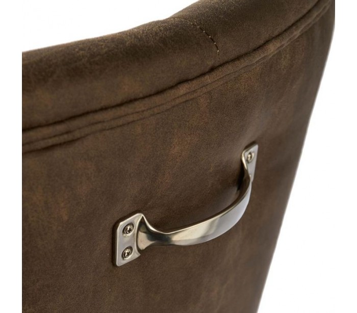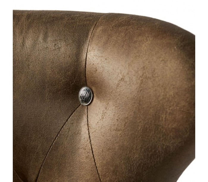 Riviera Maison spisebordsstol i et design af kaffefarvet pellini læder og brunlakeret træ. Stolen måler 93 cm i højden over ryggen og 60 cm i bredden. Detajle med knap med logo på front og håndtag på bagside.