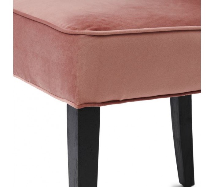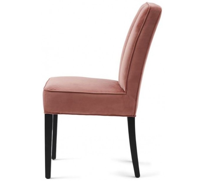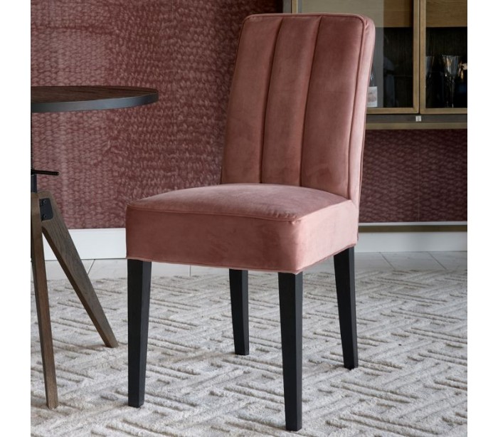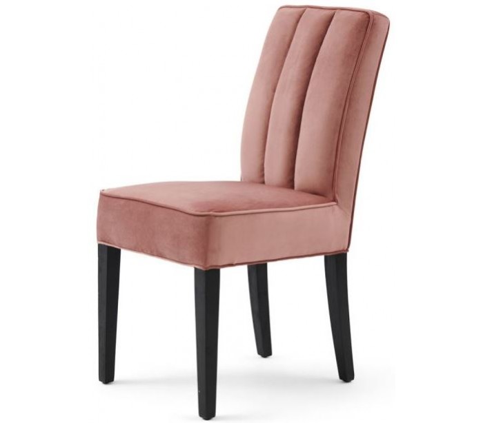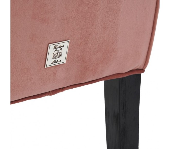 Riviera Maison spisebordsstol i et design af rosa velour og sortlakeret træ. Stolen måler 95 cm i højden over ryggen og 48 cm i bredden.