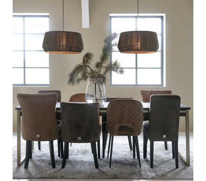 Riviera Maison spisebordsstol i et design af antracit velour og sortlakeret træ. Stolen måler 95 cm i højden over ryggen og 48 cm i bredden.