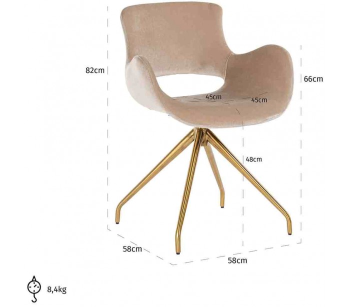 Sierra rotérbar spisebordsstol i velour H82 cm - Børstet guld/Sand