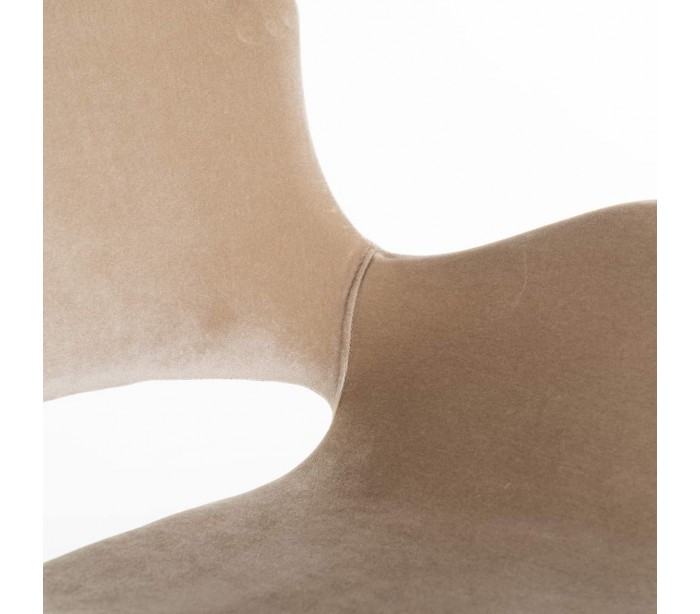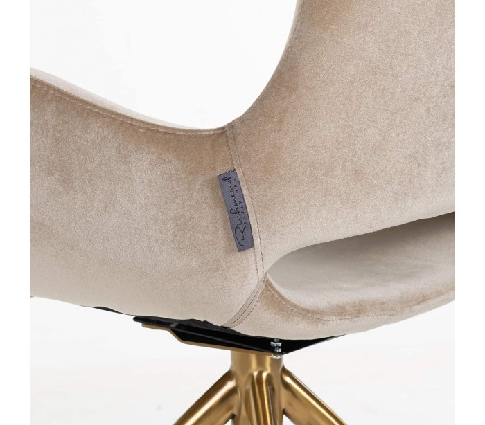 Spisebordsstol i et design fra hollandske Richmond Interiors. Stolen er fremstillet i sandfarvet 100% velour og med stel i børstet guldfarvet stål. Stolen måler 82 cm i højden over ryggen og 58 x 58 cm i bredde og dybde.